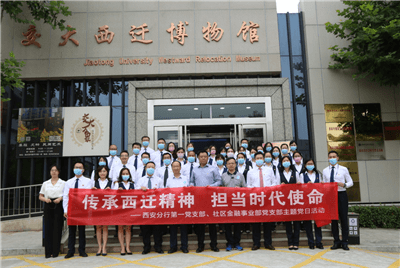 | 7月1日,北京银行西安分行第一党支部、社区金融事业部党支部联合举办“传承西迁精神 担当时代使命”主题党日活动。活动中,支部党员参观了交大西迁博物馆,从溯源南洋到交大西迁,从“南洋走来”到“与国家民族同向同行”,从“永远飘扬的旗帜”到习近平总书记对“西迁精神”的重要指示,大量的历史图片和珍藏物品展示了交大的峥嵘岁月,“西迁精神”深深感染着每一个人。参观结束后,支部党员重温入党誓词,并为党员代表赠送政治生日贺卡。此次活动激发了支部党员的爱国主义情怀,传承了“胸怀大局、无私奉献、弘扬传统、艰苦创业”的西迁精神,引导支部党员在新形势新环境中坚定信念、主动作为,在工作岗位中争当品德高尚、意志顽强、开拓进取、勇于担当的时代先锋。