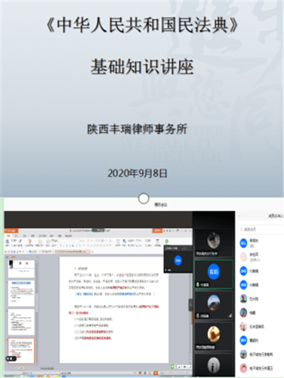 | 为深入推进市分行“党风廉政警示教育月”活动,深化巩固警示教育成果,提高全体干部职工队伍的法律素养,9月8日下午,邮储西安市分行通过线上视频会议方式对辖内业务部门负责人及骨干、支行长、零售金融副行长、零售金融部主任、公司金融部主任、风险合规部主任(区县)、综合管理部主任(城区)、资产保全人员及信贷条线人员进行《中华人民共和国民法典》专题培训。