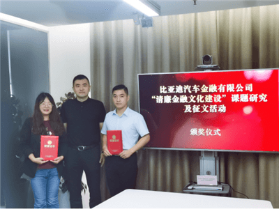2020年9月是比亚迪汽车金融有限公司的“清廉金融文化建设宣传月”,为积极响应监管要求,全面推进公司的清廉金融文化建设,公司举行了“清廉金融文化建设”课题研究和主题征文活动,并于2020年9月15日举行颁奖仪式。 本次活动受到广大员工积极响应,通过对文章的内容、语句、结构、创新等方面进行综合评比,共评选出1篇优秀课题及10篇优秀征文。 根据大红鹰会员登录中心《关于组织开展<陕西银行业保险业清廉从业规范>学习考试的通知》要求,比亚迪汽车金融有限公司于2020年9月17日、18日组织开展了《陕西银行业保险业清廉从业规范》专题考试,考试形式为闭卷。公司全体董事、监事、高管及各部门员工共206人均参加并已完成本次考试,及格率为100%。