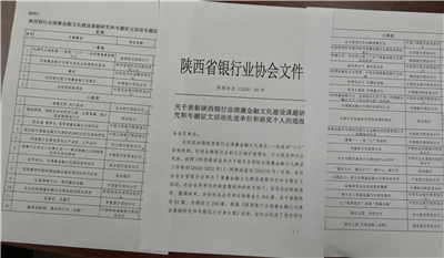 二是开展课题研究和专题征文活动。为展现该行清廉金融文化理论研究和实践调查研究成果,该行于2020年6月16日下发《关于开展清廉金融文化建设课题研究和专题征文活动的通知》,积极发动各分支机构立足实际,坚持高标准、严要求撰写高质量高水平的理论文章,择优上报银协7篇优秀征文,其中:2篇荣获专题征文二等奖,1篇荣获专题征文三等奖,切实为该行推进全面从严管党治党纵深发展、塑造清廉企业文化和营造风清气正政治生态提供理论支撑、智力支持和思想保证。 (三)征集廉政箴言 为引导广大党员坚定理想信念,增强廉洁从业意识和自我净化能力,营造遵纪守廉的良好氛围,面向全体员工开展“征集一句廉政箴言”活动。活动得到全行干部员工积极响应,共征集到“镜不蒙尘可照人,人无贪贿可正气”、“慎言慎行一身正气,清正廉洁两袖清风”、“蚁穴虽小坏金堤,贪欲半点毁人生”、“有公德乃大,无私品自高”、“金钱买不到人格,贪欲会丧失良心”“把住自己的嘴,清静如水”、“一丝不苟勤于政务,一生为民乐在其中”七条最佳廉政箴言。 (四)涵养清廉氛围 西安分行以丰富多彩的宣传载体,运用宣传海报、宣传折页及时反映分行清廉文化工作动态;在各营业网点电子显示屏滚动播放“强清廉金融之本,树清正廉洁之风”、“共建清廉金融文化,助力银行稳健发展”、“打造清廉银行,服务千家万户”等宣传标语,时刻提醒该行员工牢记廉洁自律准则;引导舆论凝聚共识,共同涵养清廉金融文化良好氛围。 (五)组织全行清廉从业规范学习以及考评 分行纪委按照陕银协发〔2020〕43号文件要求,对全行员工安排《陕西银行业保险业清廉从业规范》的学习任务,各单位通过不同形式开展对《陕西省银行业把保险业清廉从业规范》的学习。按照《关于组织开展<陕西银行业保险业清廉工业规范>学习考试的通知》(陕银协发〔2020〕46号)文件要求组织全行员工参加清廉从业规范考试,全行共计1069人参加本次考试,参考率97%,80分以上及格率100%。对于未参加集中考试的人员,及时在其返岗后及时安排进行补考工作,确保参考率100%。通过全覆盖式员工学习教育,做到全行员工牢记合规底线,做到内省自律,远离贪欲,驻守清本,廉洁从业。 二、紧扣主题、探索创新,开创西安分行清廉金融文化建设新局面 清廉金融文化建设是净化金融系统政治生态、一体化推进银行业“三不”体制机制建设的重要内容和有效载体。当前和今后一段时期,西安分行将把清廉金融文化建设作为一项重要工作任务来抓,继续严格执行《陕西银行业保险业清廉金融文化建设活动方案》,不断创新方式方法,持续巩固深化活动成效、做好成果转化,充分发挥清廉金融文化的渗透力和影响力,把廉洁基因注入该行企业文化,使清廉金融文化在员工中入脑入心,融入我行经营管理工作,着力营造风清气正的企业文化氛围。