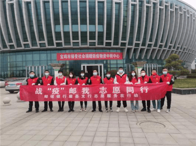 党有号召,团有行动。新冠肺炎疫情牵动着所有人的心,邮储银行宝鸡市分行团委闻令而动,积极动员广大青年员工投身疫情防控实践,充分展现了新时代邮储青年的责任担当。