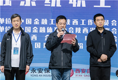 陕西银保监局党委委员、副局长、陕西金融工会主任韩彦庆在致辞中首先代表陕西金融工会向受邀参赛的陕西省财政厅、西安市财政局以及各金融机构表示欢迎,向各赞助单位表达感谢,希望通过此次比赛充分激发广大职工积极参加体育锻炼的热情,达到增强体质、振奋精神的作用,以更加昂扬的斗志、饱满的热情和强健的体魄为陕西金融行业蓬勃发展做出更大贡献,并预祝本次大赛圆满成功。