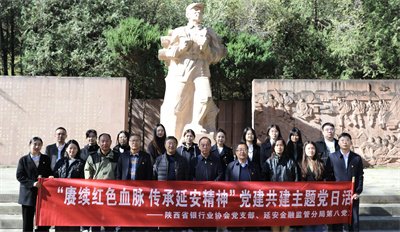 10月22日至23日,省、市银协全体党员干部前往延安革命纪念馆、杨家岭革命旧址、延安博物馆、枣园革命旧址开展实地研学。在延安革命纪念馆广场,全体党员干部面对鲜红党旗,重温入党誓词。