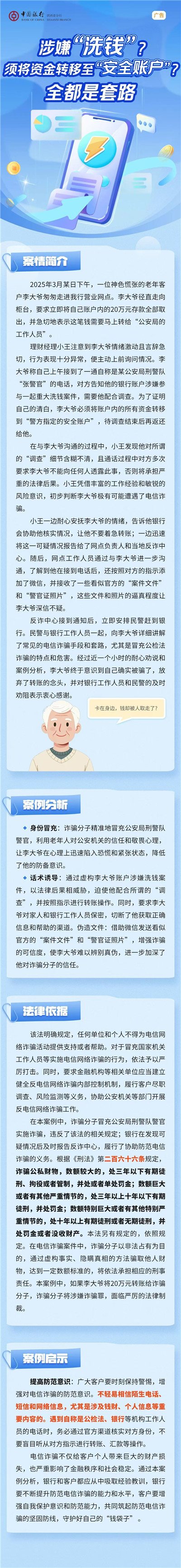 中行陕西省分行:【以案说险】涉嫌“洗钱”?需将资金转移至“安全账户”?全都是套路