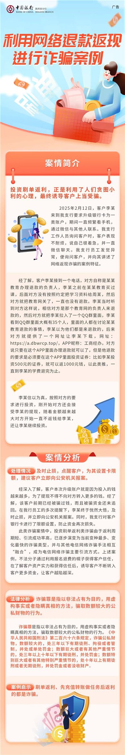 中行陕西省分行:【以案说险】利用网络退款返现进行诈骗案例