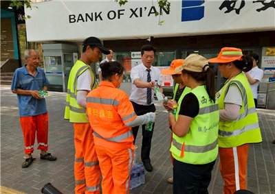 连日来,西安高温天气持续“在线”。西安银行积极响应市政府关于高温防暑降温工作的部署,以实际行动践行 ESG价值发展理念,组织了一系列“夏日送清凉”活动,为酷暑中坚守岗位的人们送去丝丝凉意。